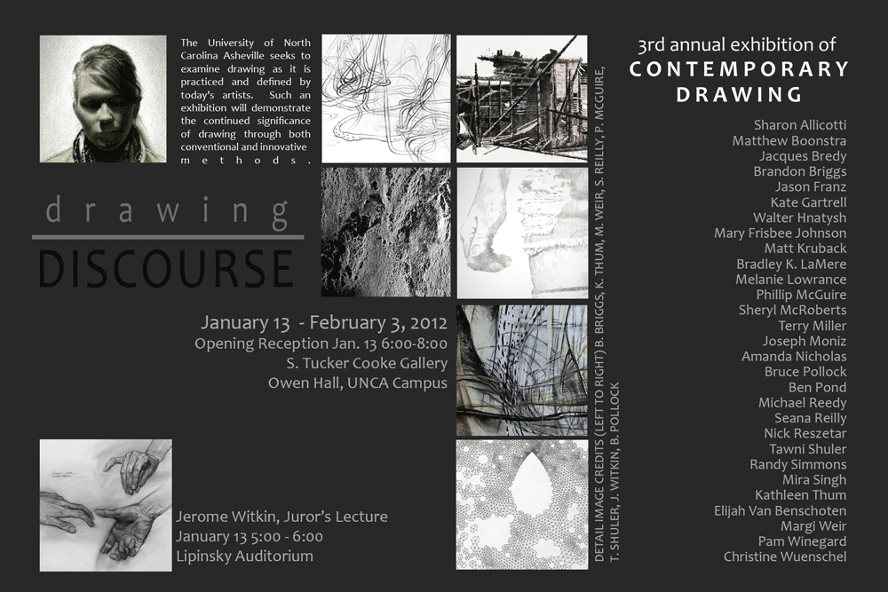UNC Asheville’s juried national exhibition, Drawing Discourse, will open with special events on Jan. 13 featuring renowned artist; Jerome Witkin. The exhibition features 41 works of contemporary drawing selected from among almost 423 submissions by 137 artists representing 34 states.
