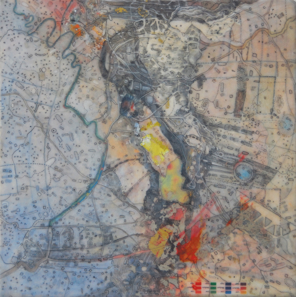 Juror Val Britton is a nationally and internationally exhibited artist based in San Francisco, whose mixed media works incorporate “the language of maps” through collage, drawing, painting, staining, printing, stitching and cutting paper. Val Britton received her B.F.A. from Rhode Island School of Design and her M.F.A. from California College of the Arts. Exhibited both nationally and internationally, her work is held in several public collections including the New York Public Library, the New-York Historical Society, the Library of Congress, and the Alameda County Art Collection. Gallery exhibitions include the John Michael Kohler Arts Center, Marine Santa Monica, the Orange County Center for Contemporary Art, Kala Art Institute, Headlands Center for the Arts, and Johansson Projects. Museum exhibitions include the San Jose Museum of Art, Katonah Museum of Art, and Nicolaysen Art Museum. Her work has been featured in New American Paintings, Sleek Magazine (Berlin), Invisible City (Melbourne), Artweek, Elephant, and The Map as Art: Contemporary Artists Explore Cartography by Katharine Harmon. She has been awarded residencies at the Headlands Center for the Arts, Ucross Foundation, Jentel Artist Residency Program, the Millay Colony for the Arts and Recology in San Francisco and received a Fellowship from Kala Art Institute. Recently the recipient of a Pollock-Krasner Foundation Grant, she lives and works in San Francisco, California.