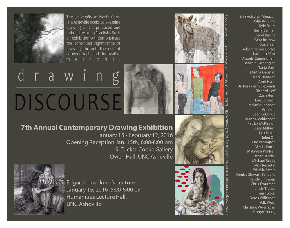 UNC Asheville’s juried national exhibition, Drawing Discourse, will open with special events on Jan. 15 featuring renowned artist; Edgar Jerins. The exhibition features 43 works of contemporary drawing selected from among 908 submissions by 307 artists representing 7 different countries.