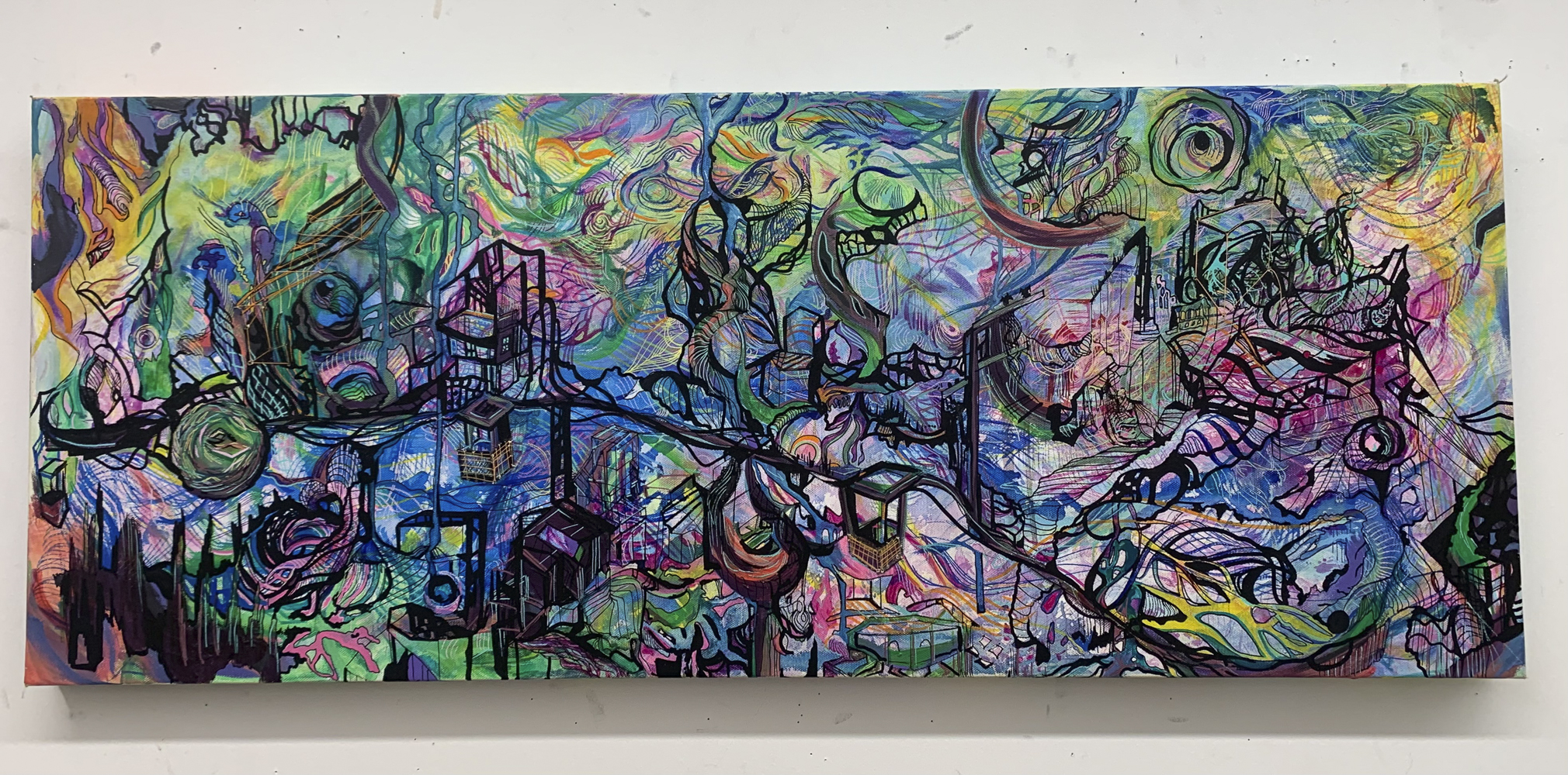 Above and Below, 12x 36 inch Ink and Acrylic painting on canvas 2022