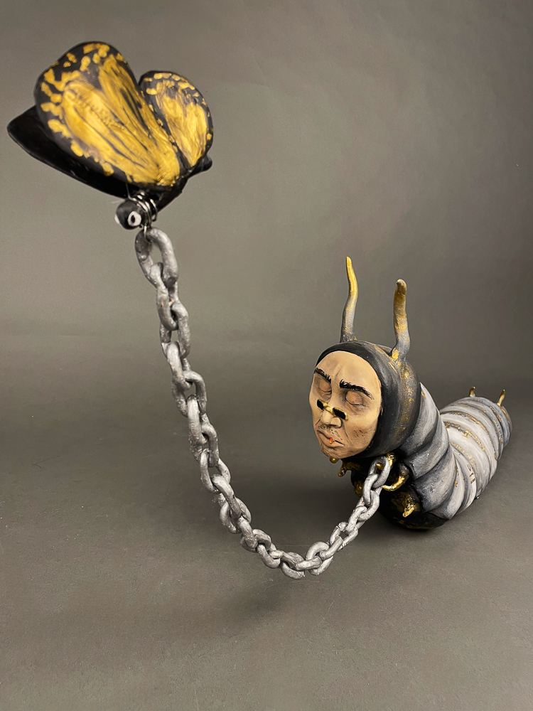 Jazmin Blanco-Vega, To Pimp a Butterfly: An Ode to Lamar, Ceramic, acrylic, and metal, 2024