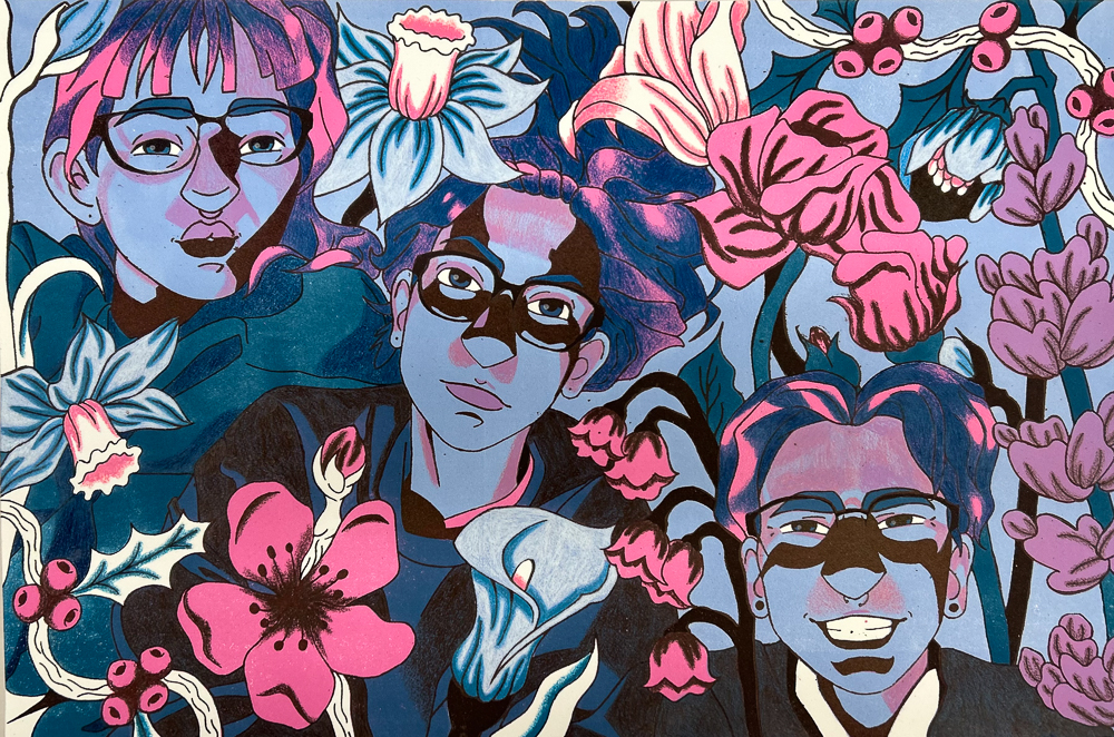Ethan Donah, Pink, Teal, and Periwinkle, Photolithograph on paper, 2024