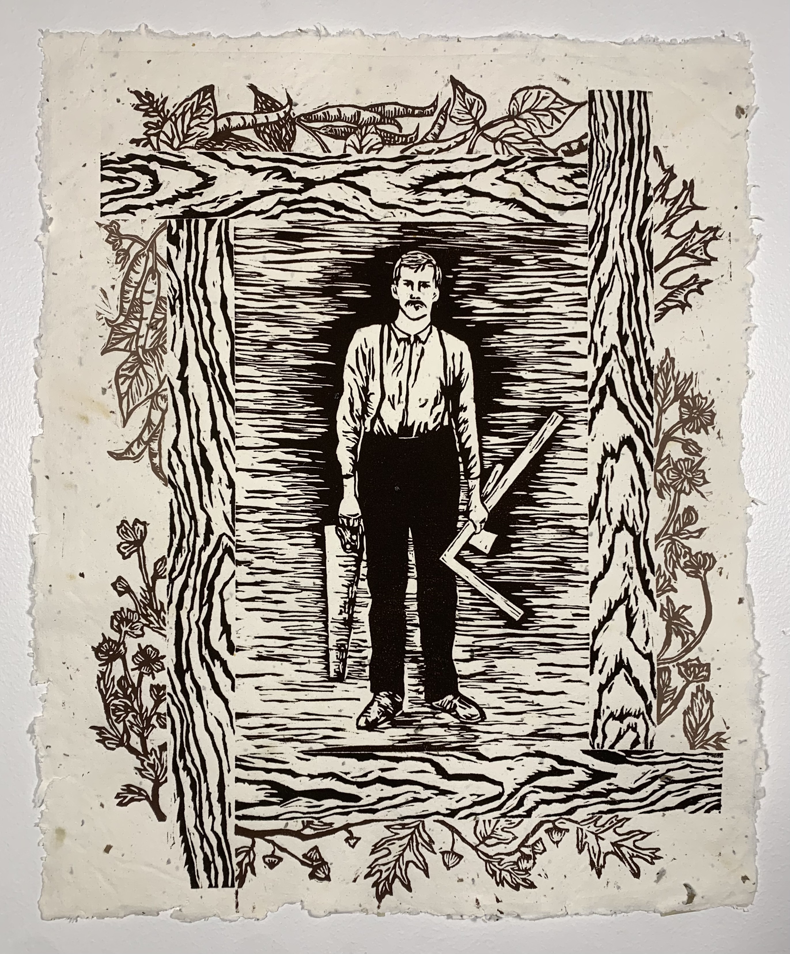 Jamie Shelor, Uncle Flournoy, printmaking, homemade paper, 2025