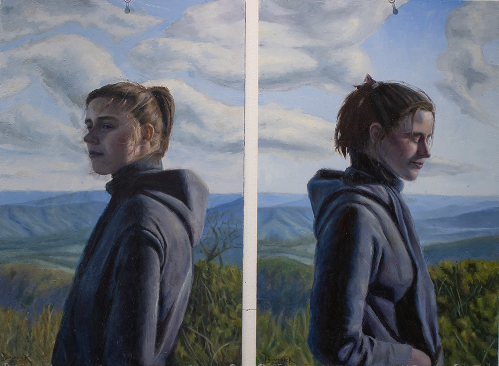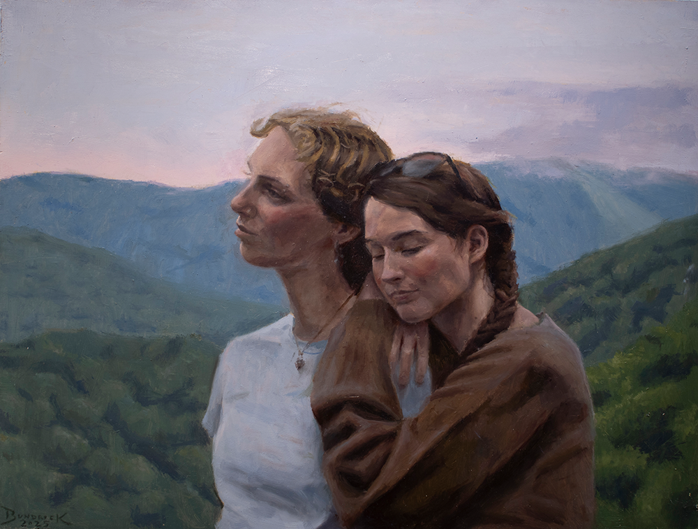 This body of work is a way of capturing and preserving moments of connection and catharsis. I’m particularly interested in moments shared between people within the natural environment, as many of my formative years have been spent outdoors discovering myself and the world around me. These gentle experiences lend themselves to gentle paintings, in which I stay grounded in reality, but blur lines and soften the scene. Human faces and expressions tend to be my focus, with relation to the nature around them. There is a sense of loving comfort within these contained scenes, as even the smallest bits of life can be what we remember about the people and places dearest to us.