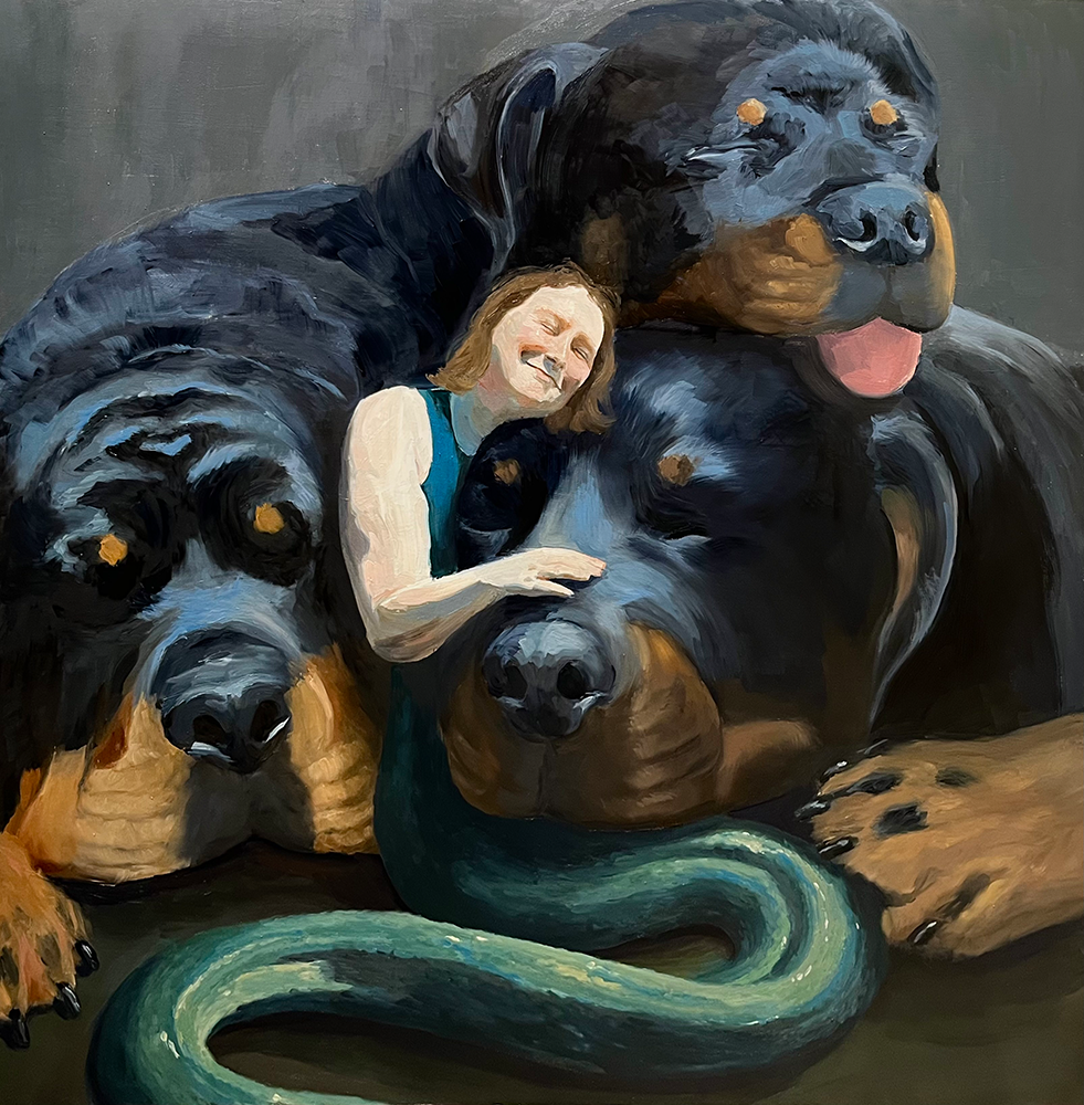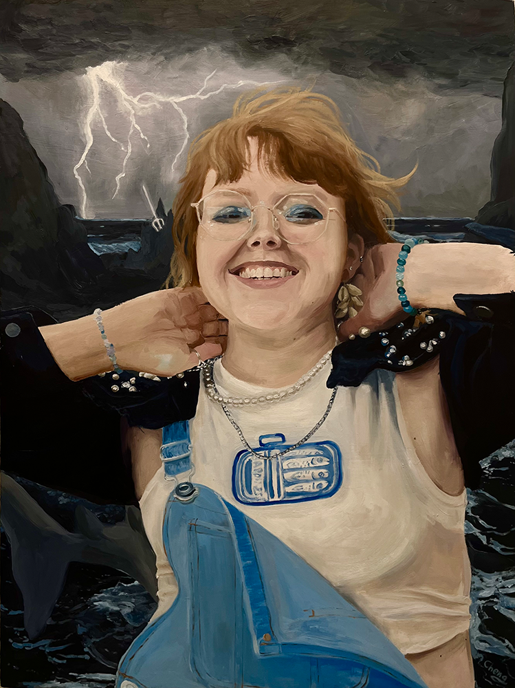 In this body of work, I have sought to rewrite these narratives of inherently ignorant, evil, and monstrous women by giving these mythological characters agency over their own stories. I present them as content and joyful as a form of protest against not only their demonization, but also to the depreciation of femininity as a whole because of the association to monstrosity. I have aimed to represent the women as their own individuals rather than a means to an end, giving a voice to both them and women affected by patriarchal norms in our modern society.